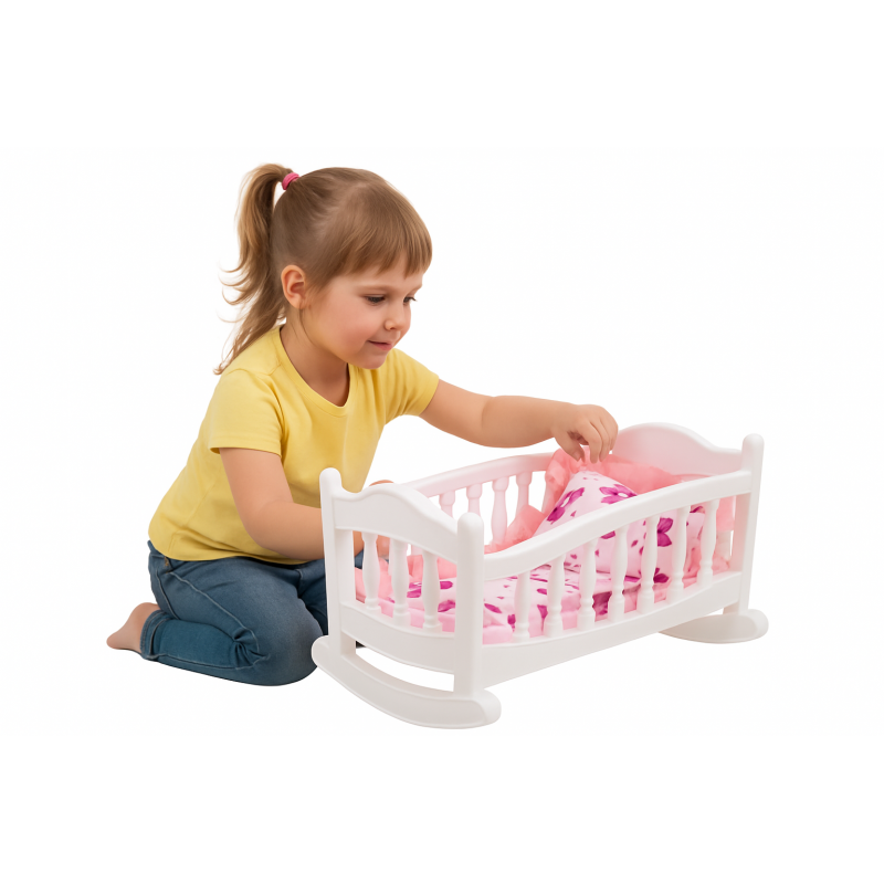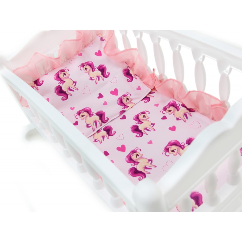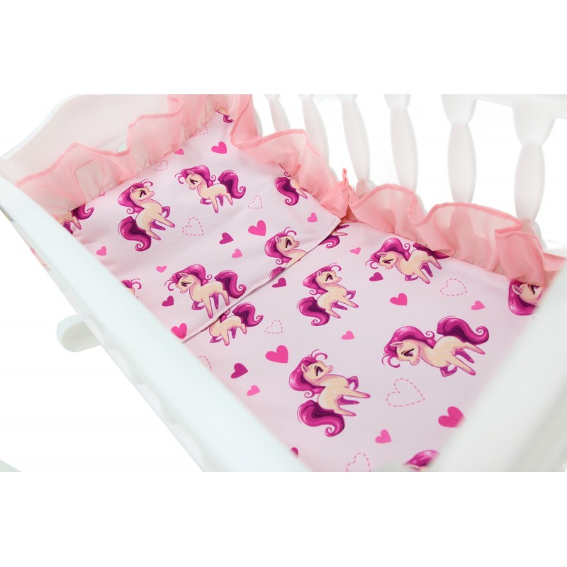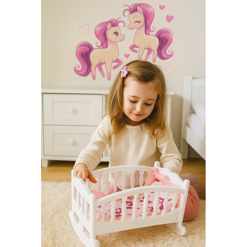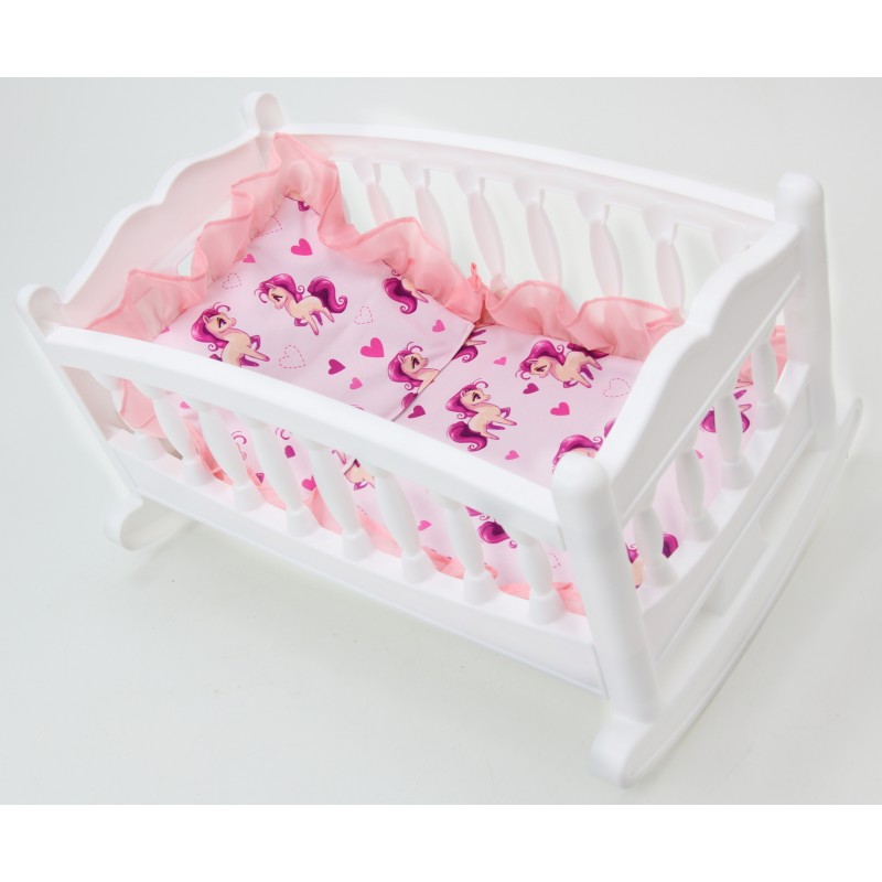 Łóżeczko - Kołyska "Kucyki"Zestaw dla lalki.Pościel w komplecie !PRODUKT POLSKI Kolor:BIAŁY |